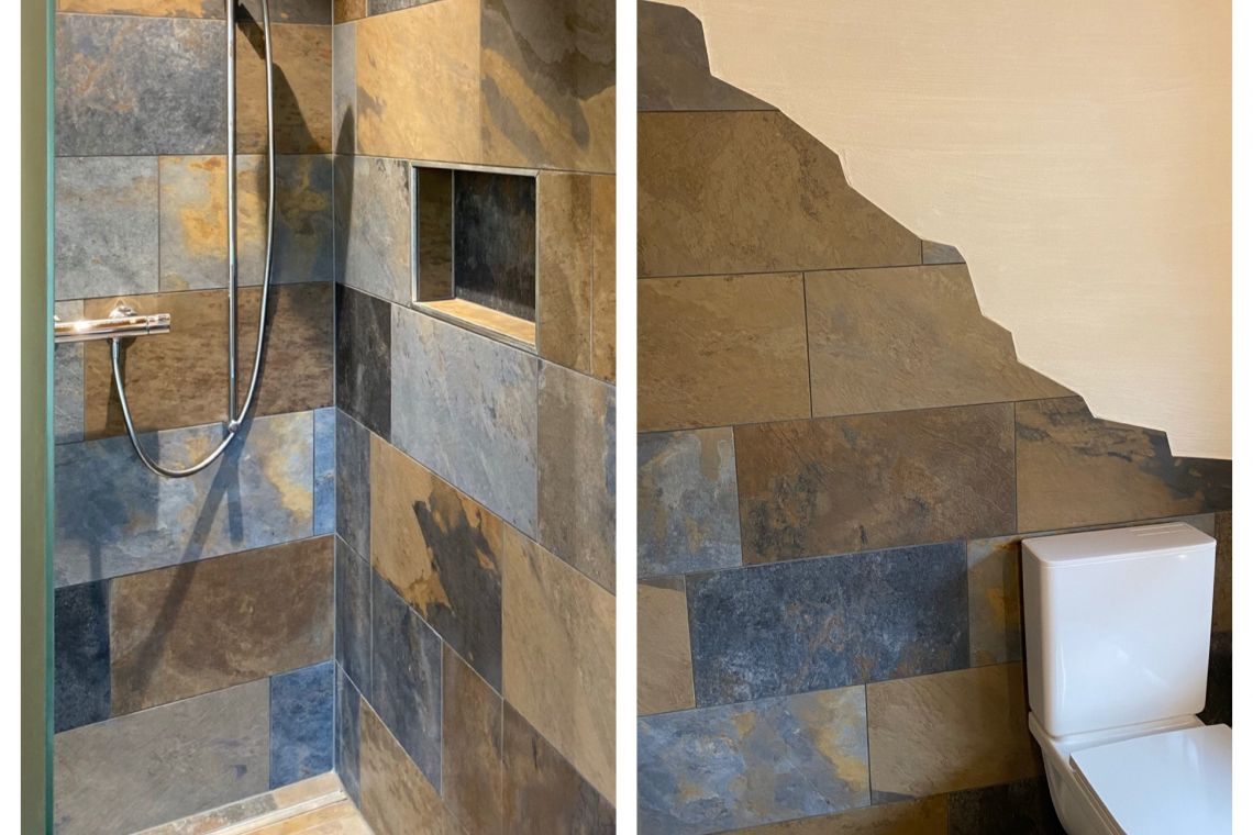 Durch die optimal gewählten Farben erhält der Duschbereich ein beruhigendes Ambiente. Die Flächen wirken entspannend auf die Seele.